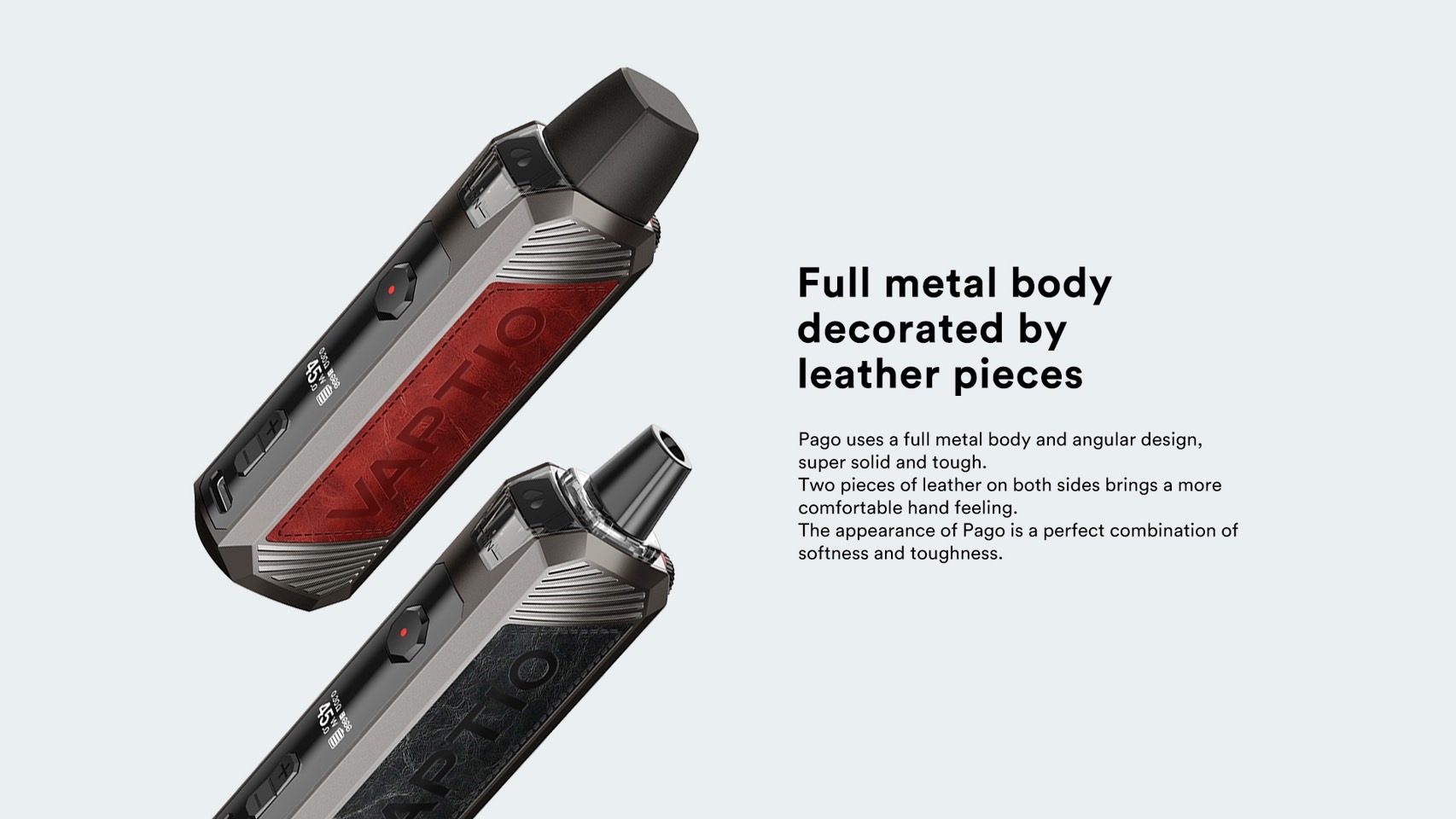 1.Pago採用全金屬機身和稜角設計,超級堅固、堅韌。 2.兩側兩片皮革帶來更舒適的手感。 3.Pago的外觀是柔軟與韌性的完美結合。