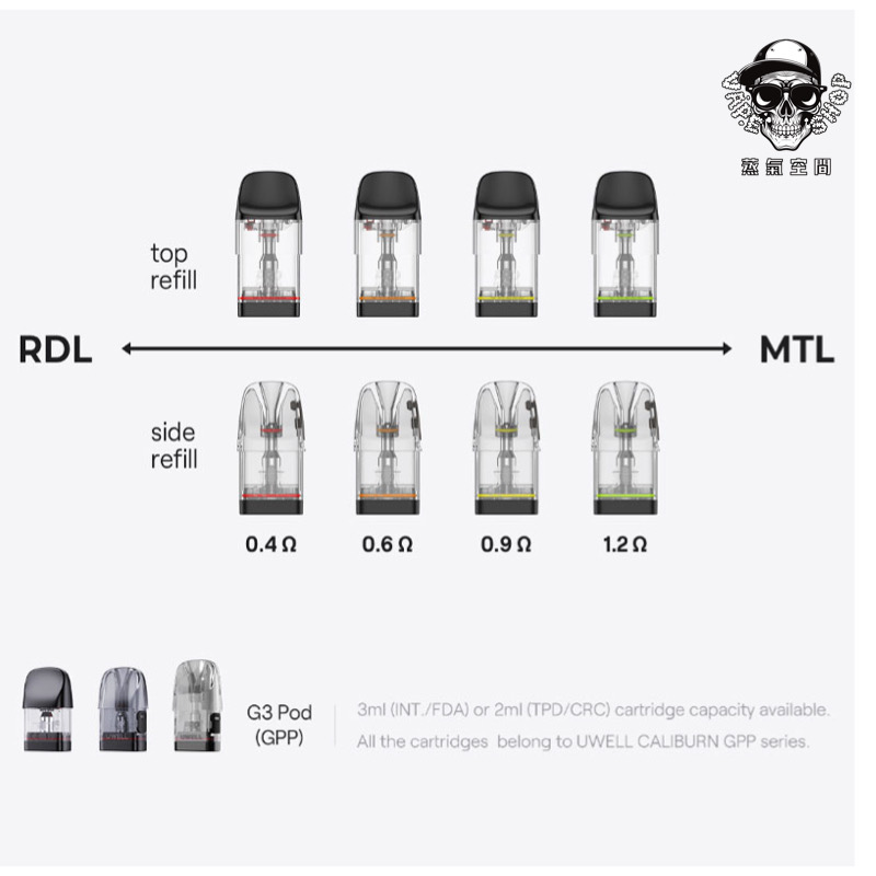 G3 0.4Ω 側灌4入/盒, G3 0.6Ω 側灌4入/盒, G3 0.9Ω 側灌4入/盒, CALIBURN GPP 一體式艙0.4Ω(1盒3入), CALIBURN GPP 一體式艙0.6Ω(1盒3入), CALIBURN GPP 一體式艙0.9Ω(1盒3入)