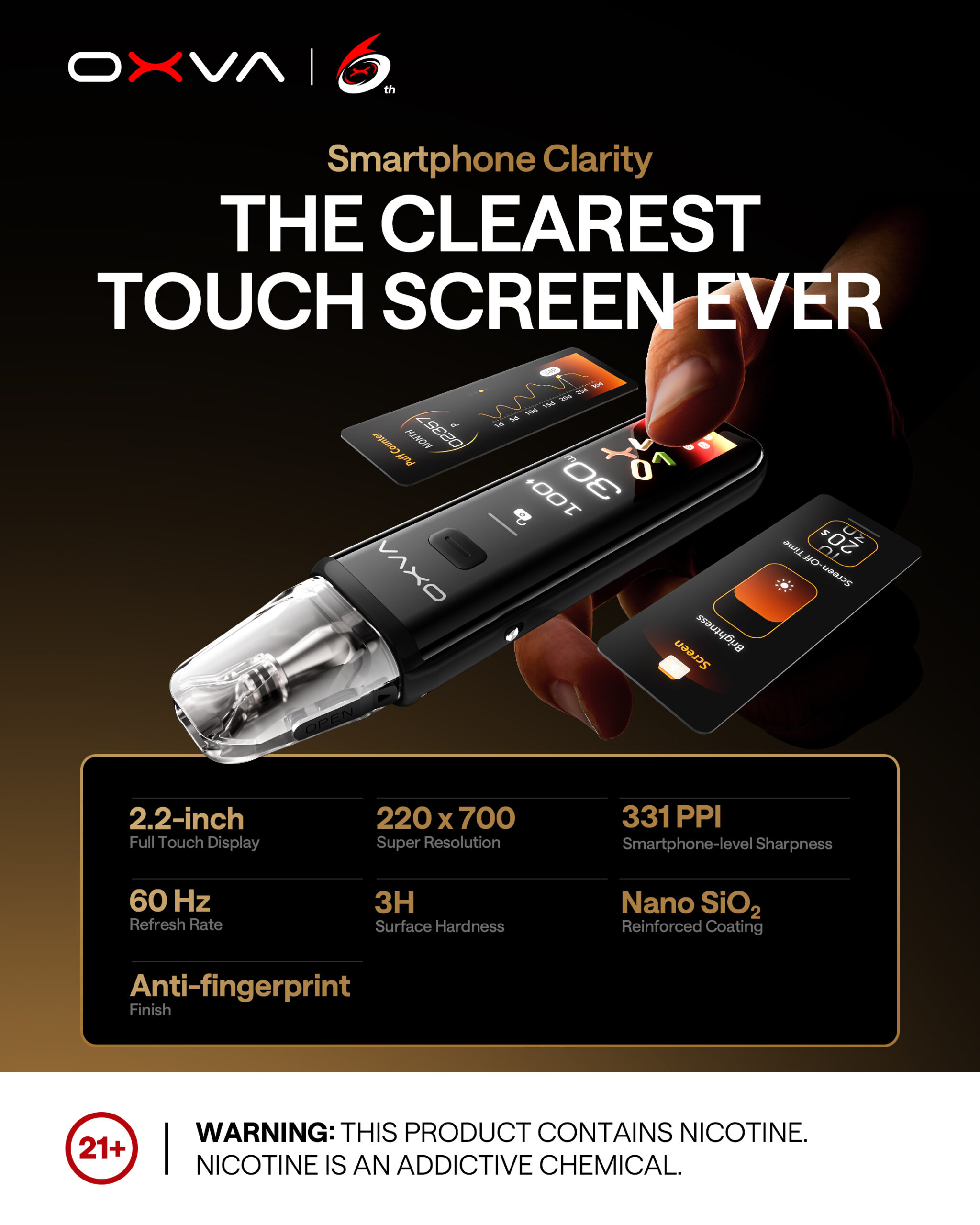 • 2.2 吋全彩觸控螢幕: 顯示電量、功率、阻值與吸氣次數。