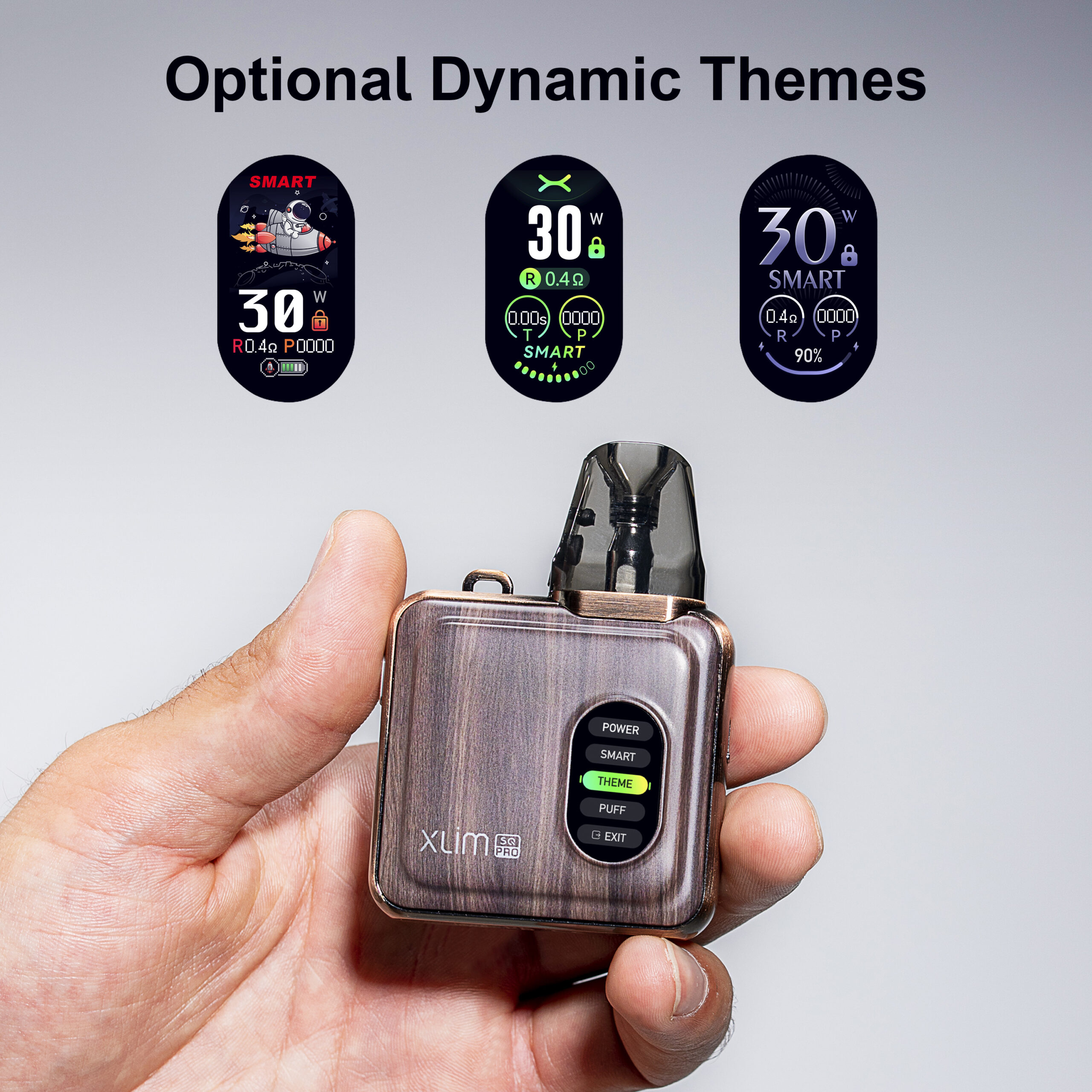 大螢幕視覺享受擁有0.96寸TFT(發光電子晶體)彩色螢幕和任選的動態主題帶來豐富的螢幕電子幕煙體驗,滿足您的最佳偏好智慧模式且精準自動匹配電源,而電源模式可讓您手動將動力調整到所需的強度,這兩種模式迎合不同的偏好,選擇權在您。🌟 XLIM SQ PRO電子煙規格