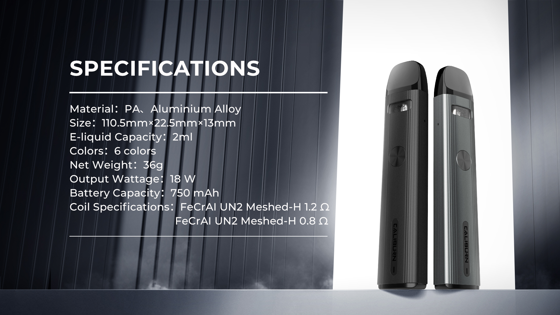 Caliburn G 配備可更換的 0.8Ω 和 1.0Ω 線圈,以滿足不同消費者對煙量和口感的不同需求。 - 雙氣流量系統